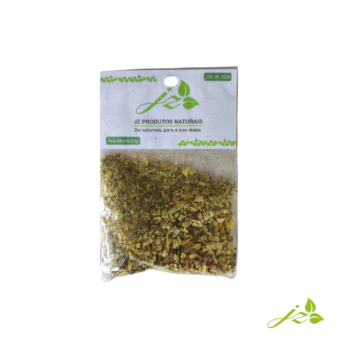 Ingredientes: alho, cebola, cebolinha, salsa, orégano, manjericão, tomate em flocos, pimentão vermelho, páprica e caldo de galinha.